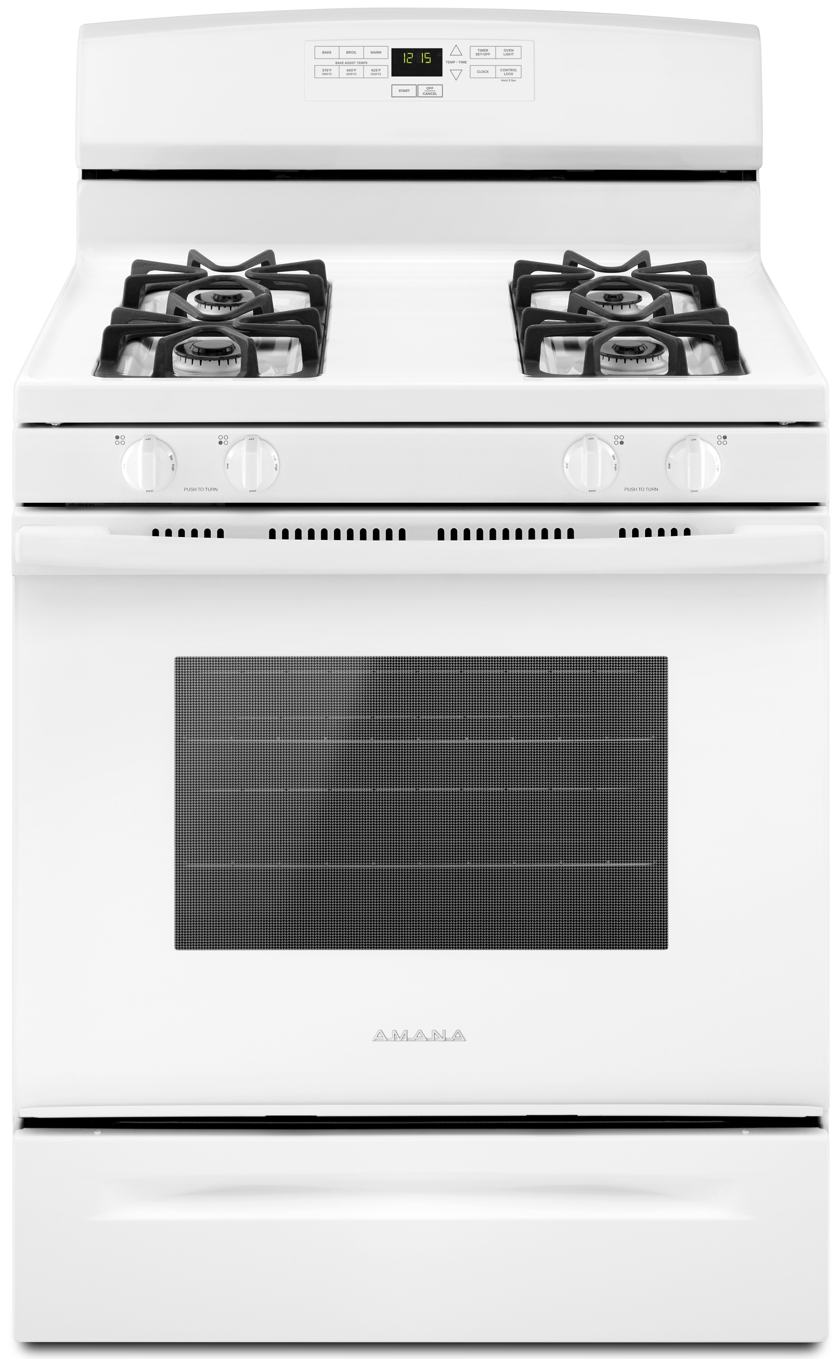 • This 30-inch Amana® Gas Range with 5.0 cu. ft. Capacity bring cooking and convenience together with Bake Assist Temps. Simply choose a preset temperature setting to get started. And if you need to delay dinner, use the Warm Hold feature so that your food is still ready when you are.